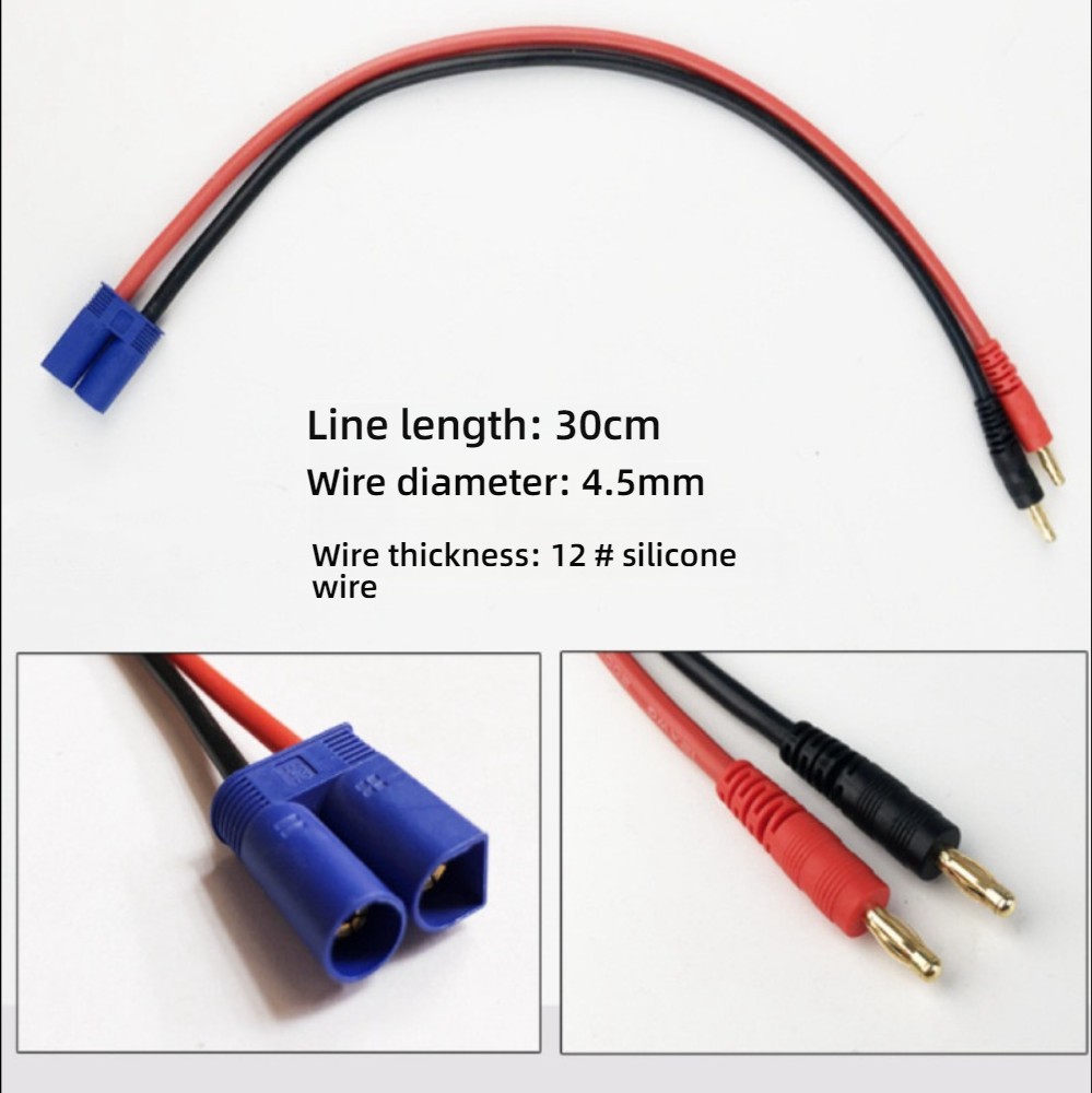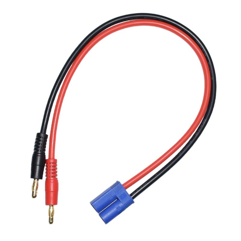 Versatile 4.0mm banana plug charging cable compatible with EC5, T-Plug (Deans), and TRX connectors. Features premium 14AWG silicone wire for high current flow and heat resistance. The essential multi-adapter for your RC lipo battery charger.