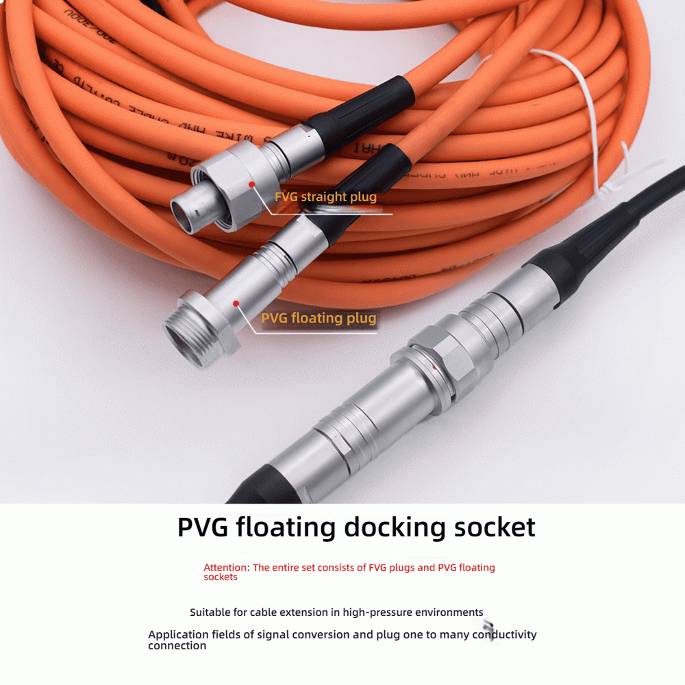 The deep sea 600m underwater cable extension FVG/PVG connector is designed for extreme underwater and high-pressure applications. This IP68-rated vacuum-sealed aviation connector ensures reliable push-pull self-locking connections for submersible vehicles, marine drones (UUVs), ROVs, and industrial underwater systems.