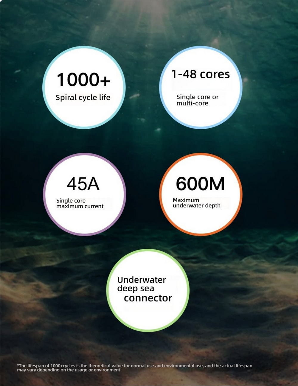 With robust metal alloy housing and gold-plated copper contacts, this connector provides excellent electrical performance, mechanical strength, and resistance to saltwater corrosion. The vacuum-sealed design guarantees stable signal and power transmission while preventing moisture ingress, even at depths of 600 meters.