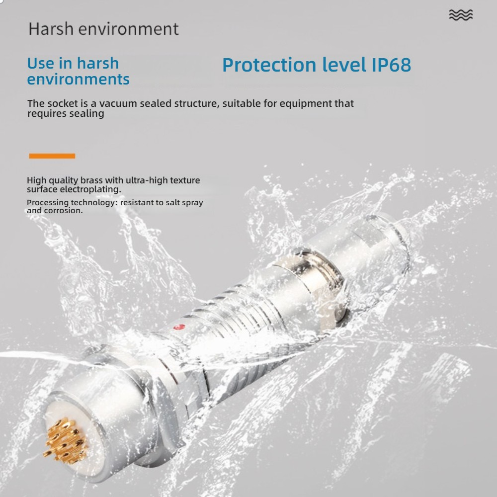 The connector uses a vacuum sealing structure to prevent moisture, dust, and contaminants from affecting the signal and power transmission. Ideal for outdoor, marine, and industrial applications.