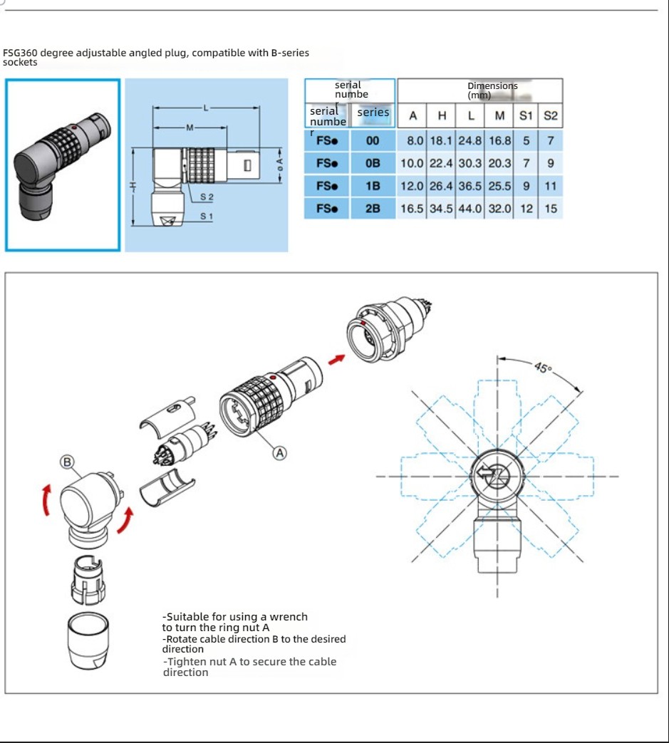 The FSG right-angle aviation plug with 360° adjustable cable exit ensures maximum flexibility in cable routing while maintaining robust electrical performance. Its push-pull self-locking design allows quick and reliable connection, while the waterproof construction protects against moisture, dust, and environmental hazards.