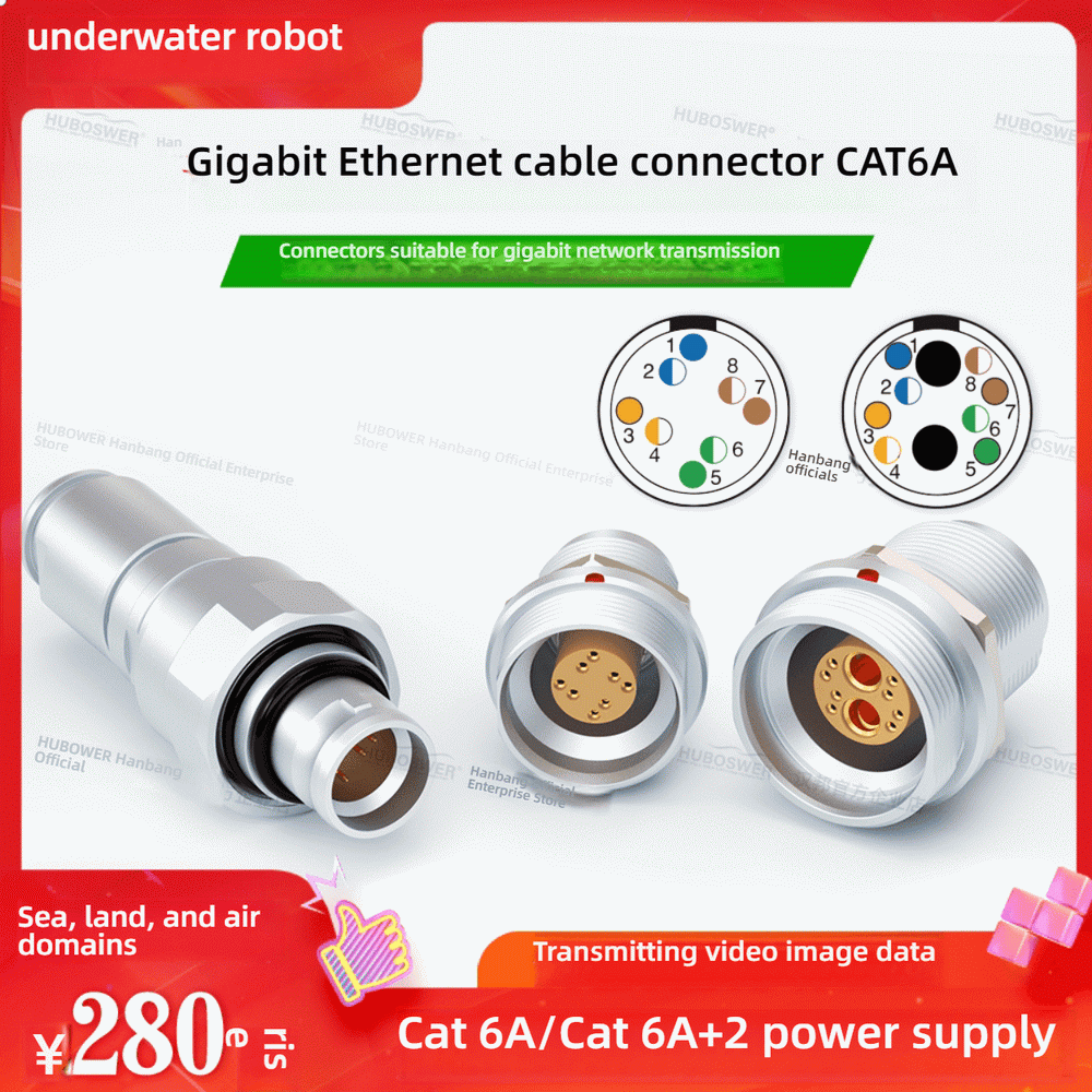 High-quality LEMO 514 Gigabit + Power CAT6A 8+2 pin self-locking connector for underwater robots. Supports signal and power transmission with durable, waterproof design. Ideal for industrial, marine, and robotics applications.