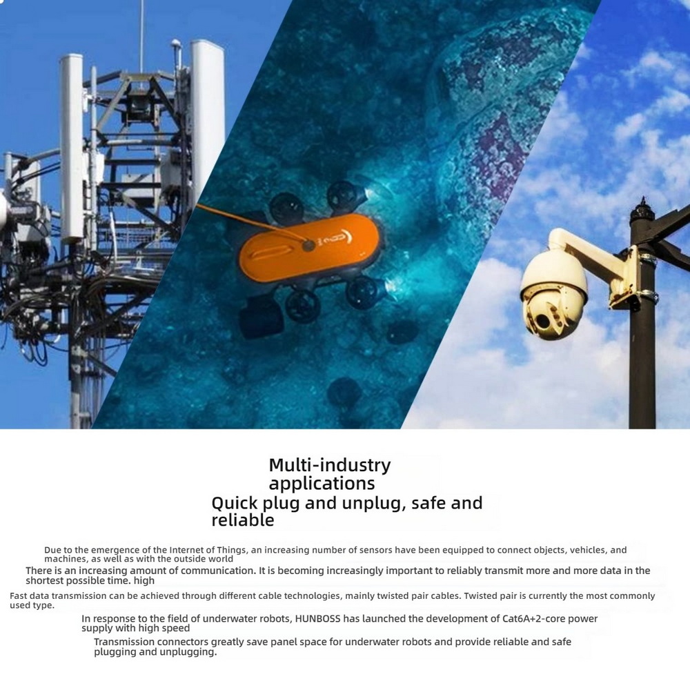 The LEMO 514 Gigabit + Power CAT6A connector is a high-performance 8+2 pin self-locking solution designed for underwater robots and demanding industrial applications. This connector allows simultaneous transmission of high-speed Gigabit Ethernet signals and power through a single cable, ensuring reliable communication and operation in marine and industrial environments. Its robust self-locking mechanism guarantees secure connections even in vibration-prone or submerged conditions. The waterproof and corrosion-resistant design makes it ideal for robotics, marine instrumentation, and industrial automation.