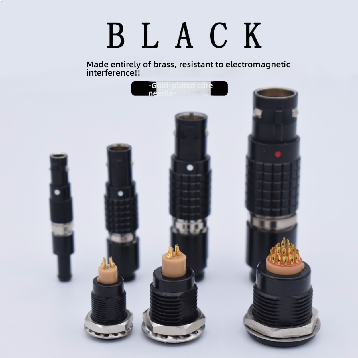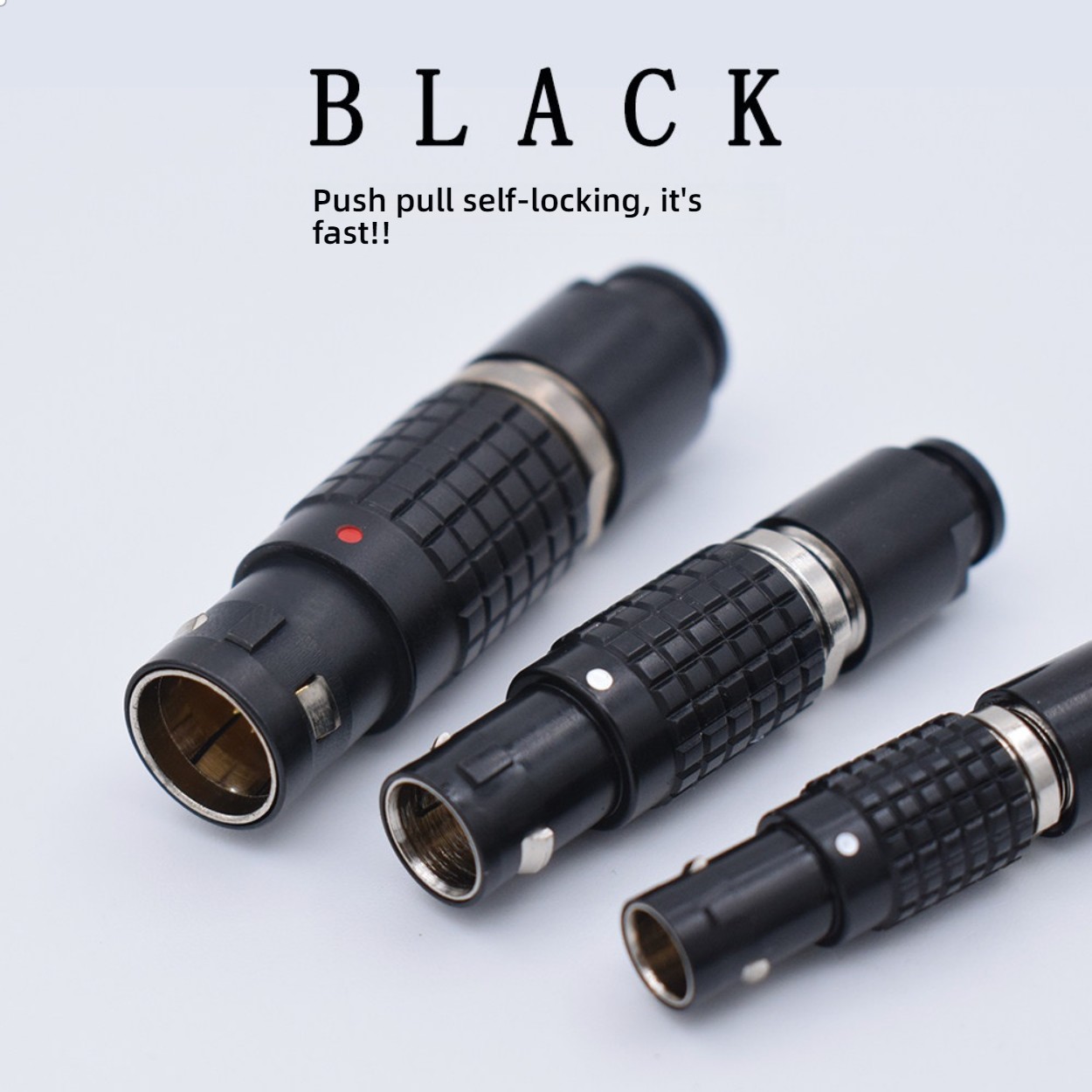High-quality black LEMO FGG/EGG aviation sockets 00B/0B/1B, 2/4/6/8/12 pins with push-pull self-locking mechanism. Ideal for aviation, medical, industrial, and test equipment. Durable, secure, and reliable connection.