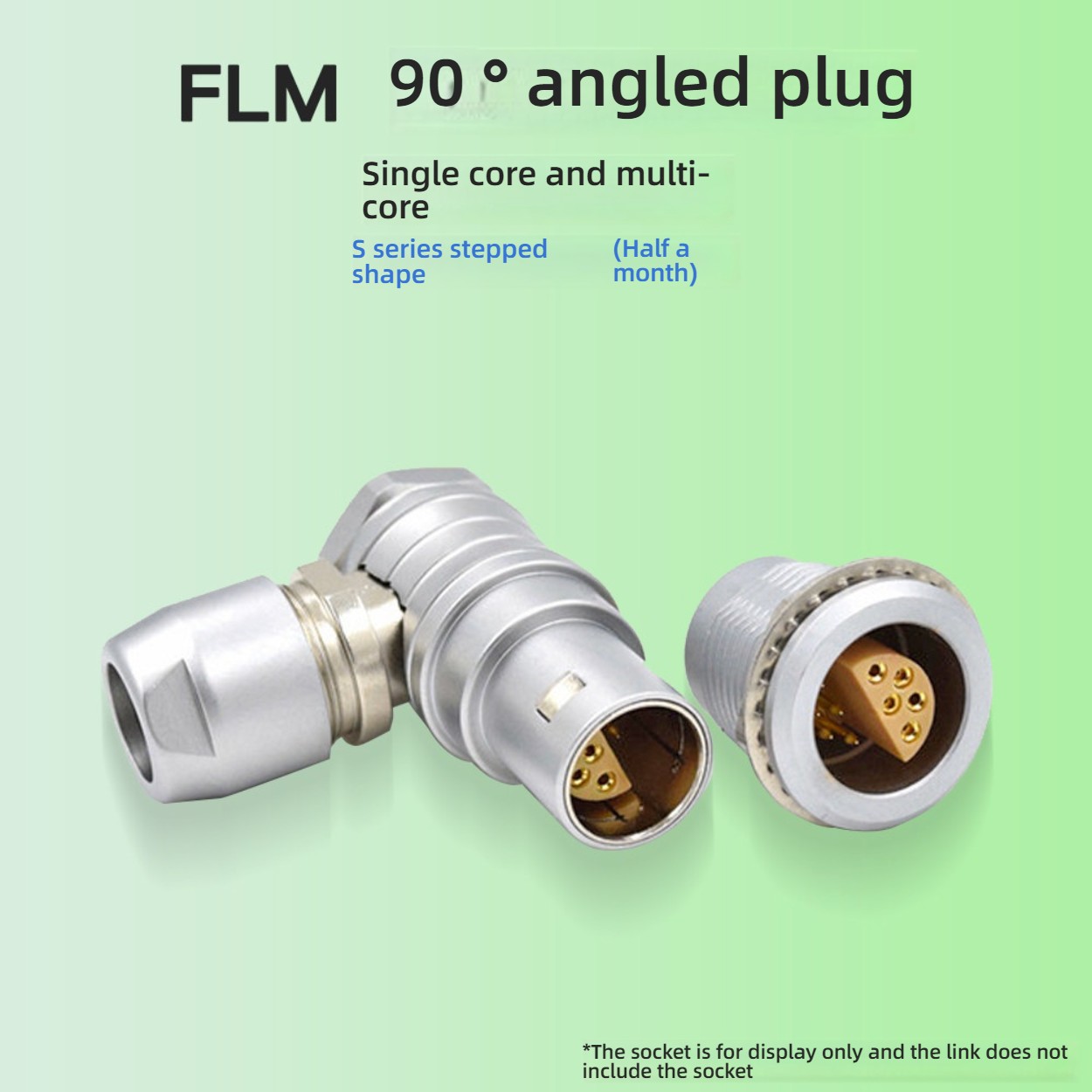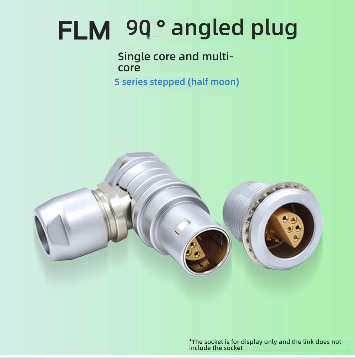 LEMO-compatible S Series FLC FLM 00S/1S/2S right angle plug with stepped half-moon single core design. Push-pull self-locking connector for industrial, testing, and high-reliability applications.
