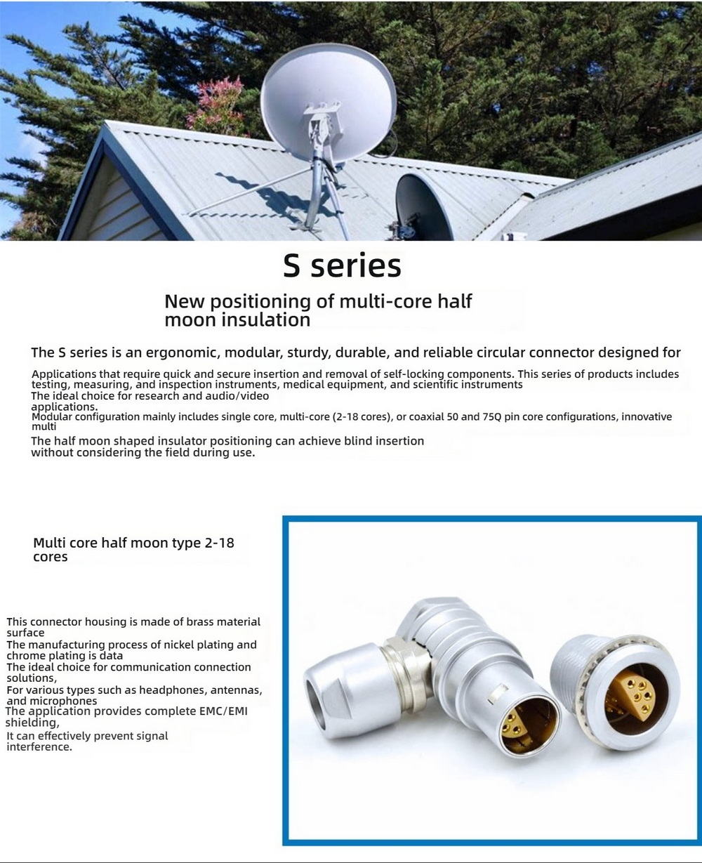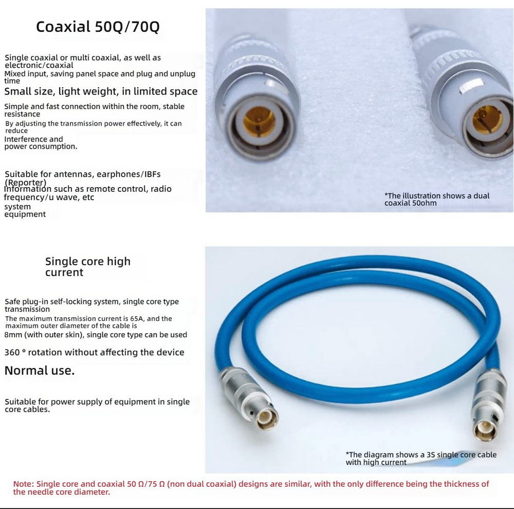 The LEMO-compatible S Series FLC and FLM 00S/1S/2S right angle plug is designed with a stepped half-moon single-core structure for secure and precise alignment. This push-pull self-locking connector ensures fast and reliable connection in compact or limited-space equipment layouts.