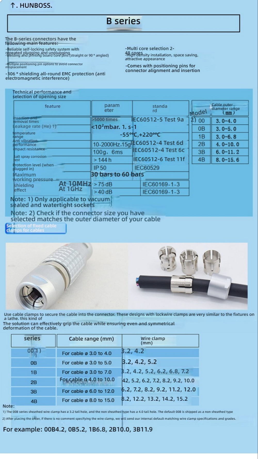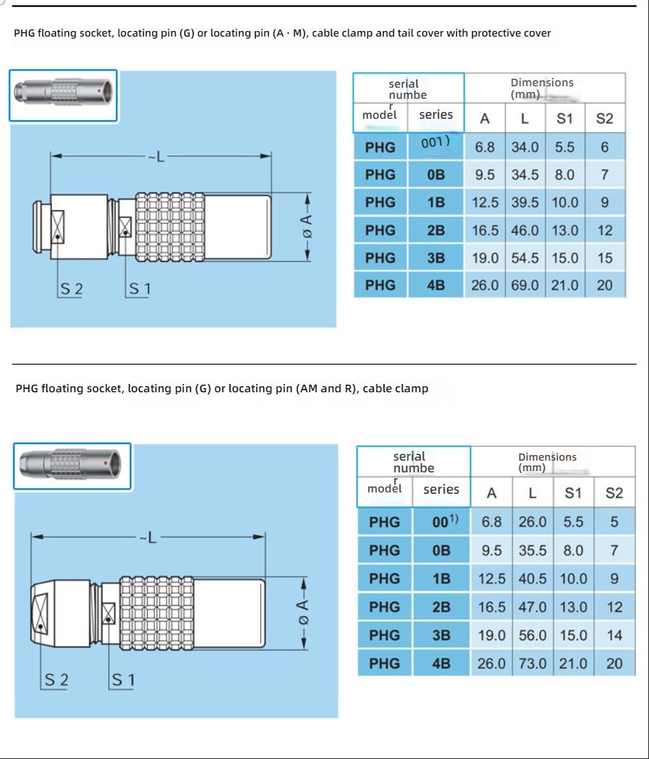 Compatible with LEMO PHG series 00B/0B/1B/2B/3B connectors