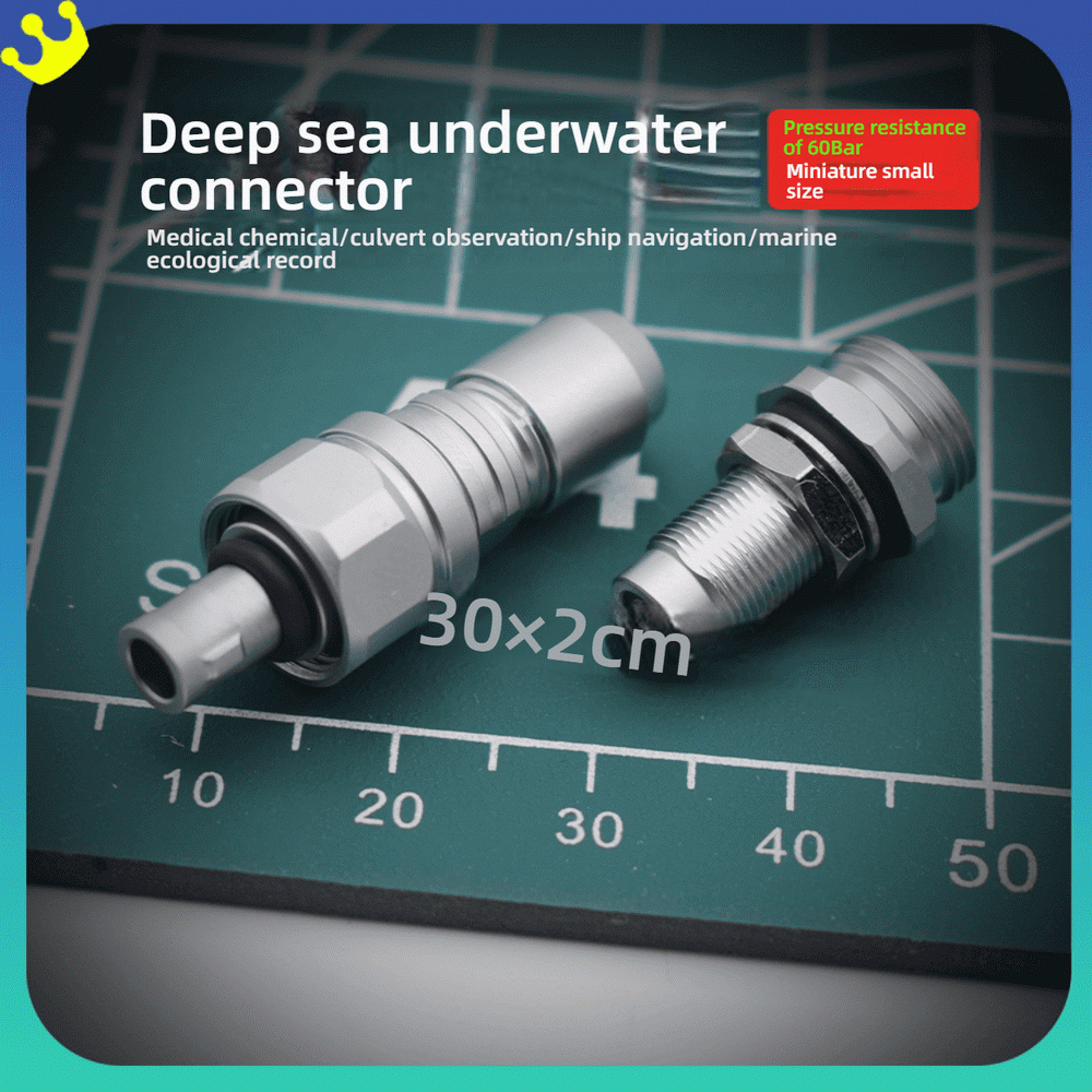 Miniature waterproof underwater connector for UAVs and submersible robots. Deep sea 600m IP68-rated connector for reliable push-pull self-locking connections in marine, ROV, and underwater applications.