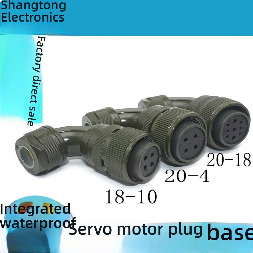 MS3108A circular aviation connector for servo motors and industrial equipment. Available in multiple configurations including 18-10, 20-4, 20-18, 22-22, 24-11, and 20-29 pin layouts for reliable power and signal connections.